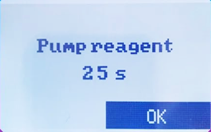 ▌自動(dòng)加藥劑倒計(jì)時(shí),觀察處理槽里面的是否有藥劑流出 ,等待藥劑管沒(méi)有空氣的情況下按“OK”按鍵。